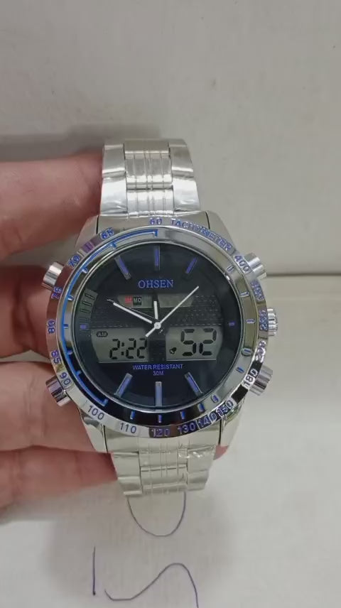 OHSEN Tactical Hybrid: Men’s Dual-Display Stainless Steel Sport Watch